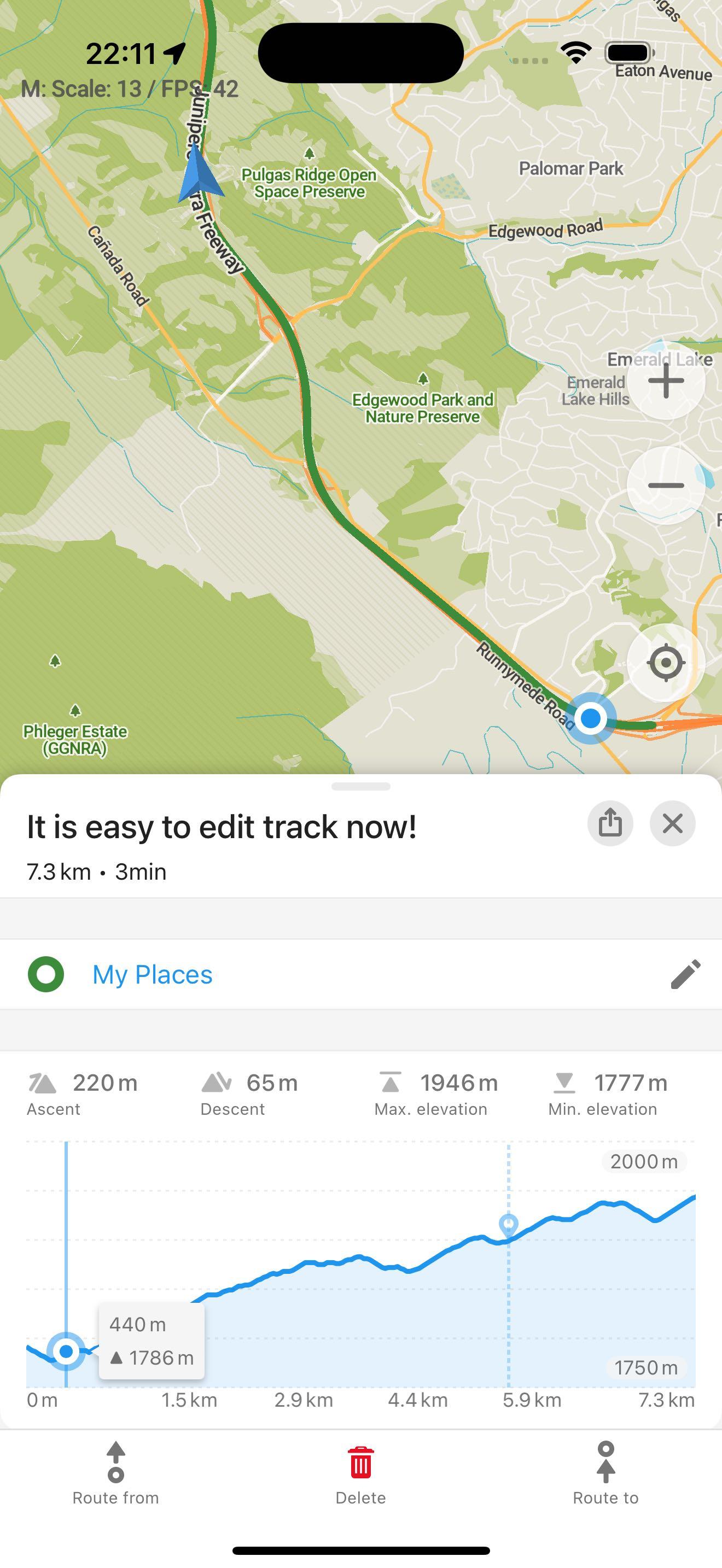 - Dabar galite redaguoti ar ištrinti įrašytą maršrutą iš karto po išsaugojimo